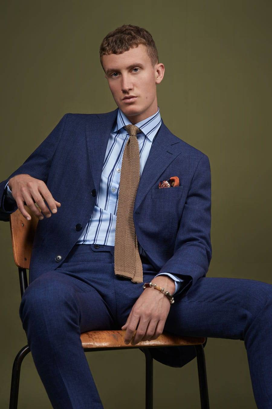Edler Leinenananzug und feinste Knitwear