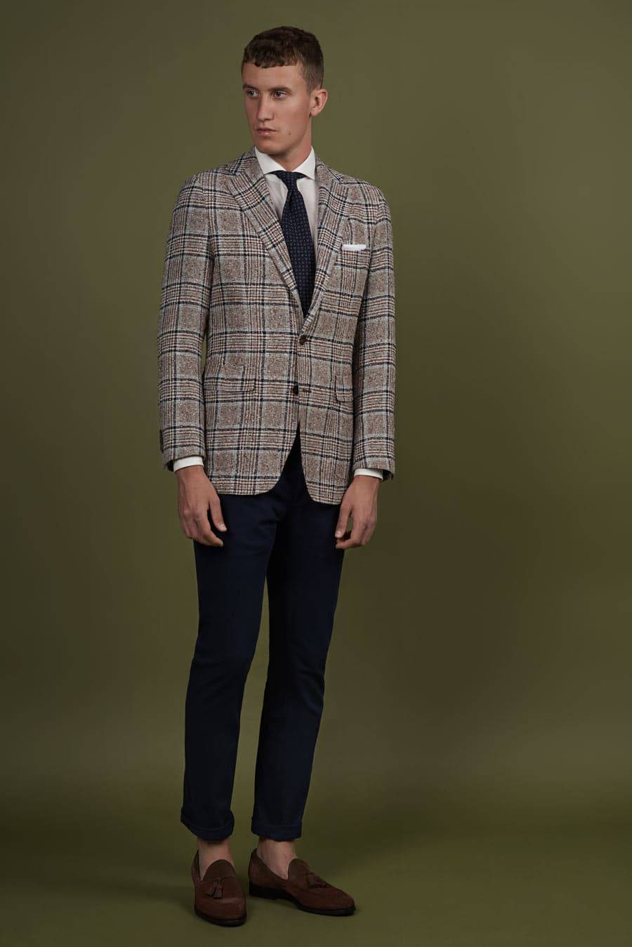 Unsere Frühling/Sommer 2019 Kollektion: Leinen, Glencheck, Baumwolle und feine Sommerstoffe für selbstbewusste Maßanzüge und Blazer.