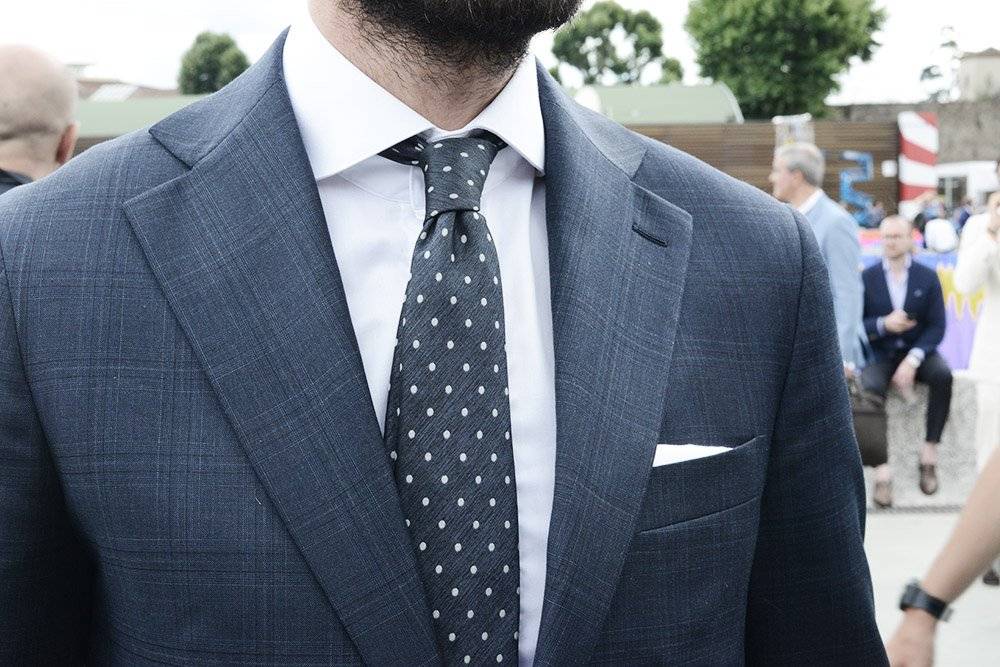 Wenn ihr verschiedene Muster miteinander kombiniert, gibt es die ein oder andere Faustregel, nach der ihr euch richten könnt. Größe der Musterung, Design (Punkte, Streifen, Karos), Farbe und Intensität (stark oder schwach). Ihr könnt ruhig mehrere Muster miteinander kombinieren, aber achtet darauf, dass diese farblich zueinander passen und die Größe der Muster nicht übereinstimmt. Zum Beispiel: Kombiniert einen Anzug mit großen Karos mit einer mikro-gemusterten Krawatte . Farblich intensive Muster sehen dann am besten aus, wenn sie mit farblich schwächeren kombiniert werden.