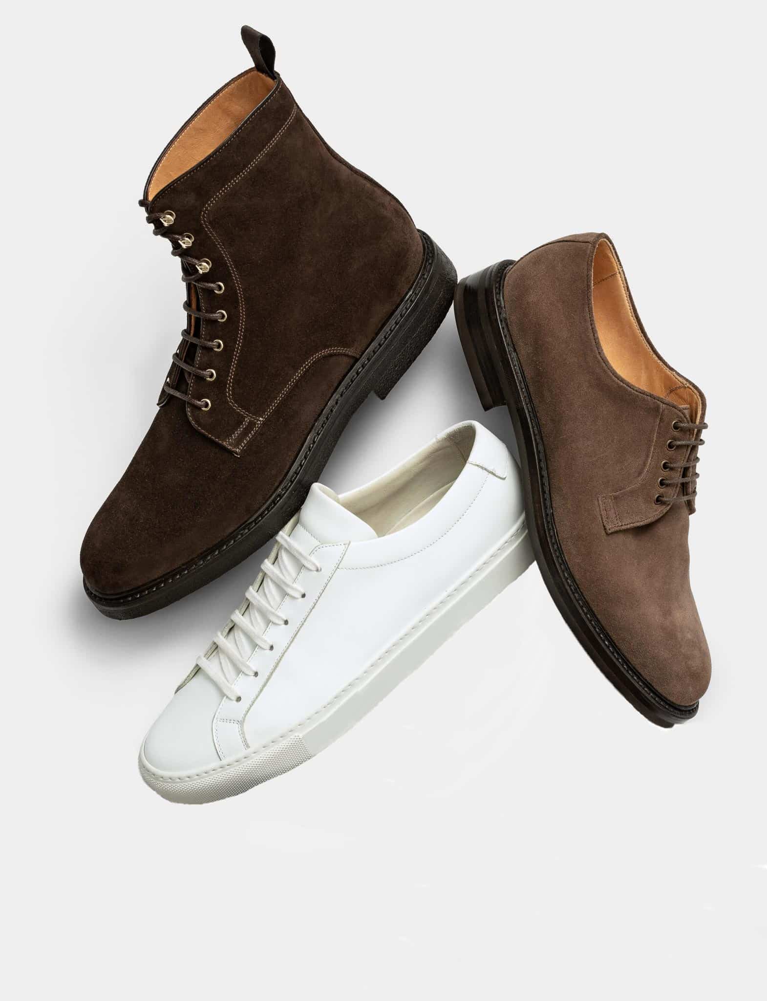 Die drei Schuhe, die jeder Mann in diesem Winter braucht. Low-Top-Sneaker: in reinem Weiß. Passt zur Jeans oder zum Anzug.