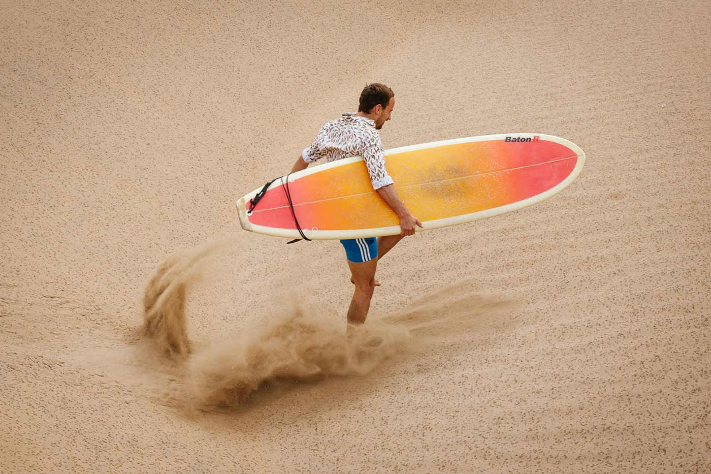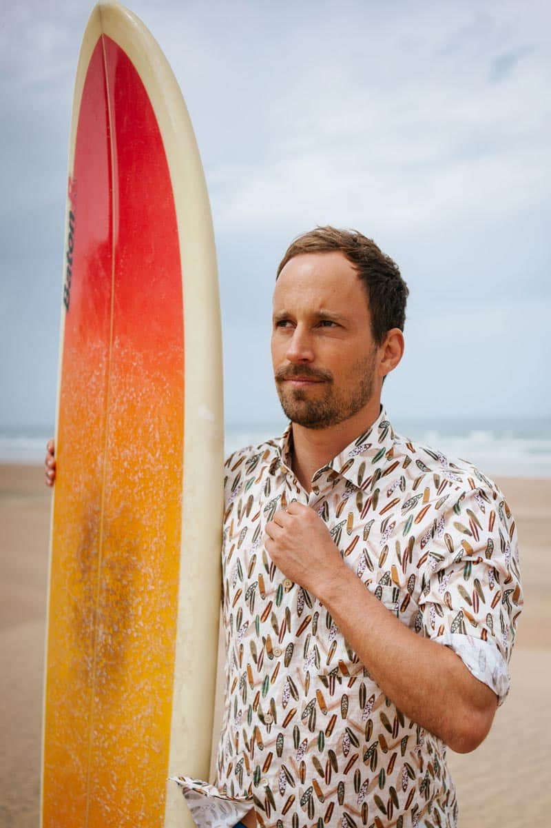 Surfboard-Print trifft Maßhemd: Unser superleichtes Sommerhemd aus 80g Baumwolle in einer coolen Fotostrecke am Strand von Marokko.