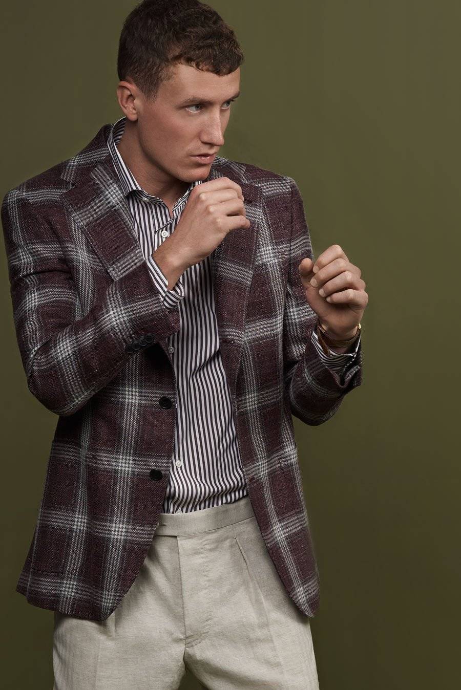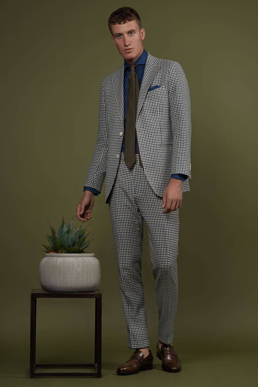 Unsere Frühling/Sommer 2019 Kollektion: Leinen, Glencheck, Baumwolle und feine Sommerstoffe für selbstbewusste Maßanzüge und Blazer.