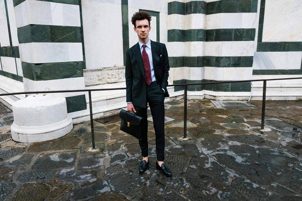 Pitti Uomo 94 Interview: Alex über aktuelle Trends, britische Einflüsse, Erdtöne und seinen dunkelgrünen Mohair-Maßanzug in Florenz.